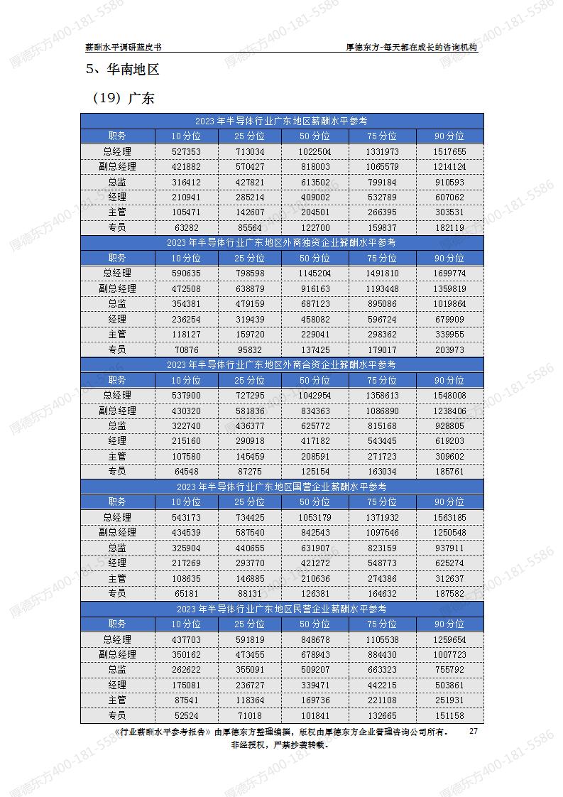 2023年半导体行业薪酬水平参考