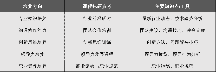 1. 培养员工的专业知识和技能,提高工作效率和质量;